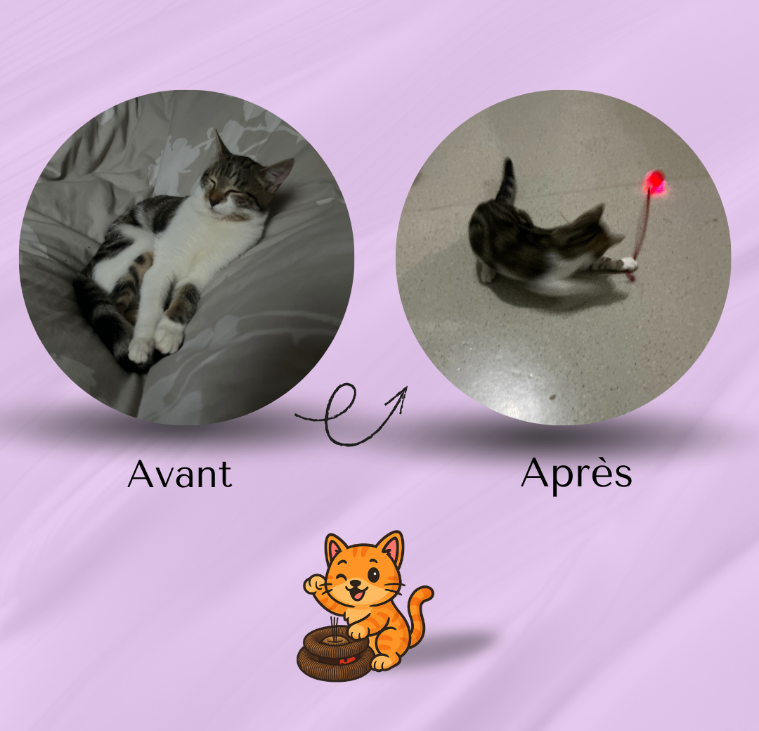 Un simple voyant lumineux permet d’ajuster l’intensité pour s’adapter à l’énergie de votre chat.