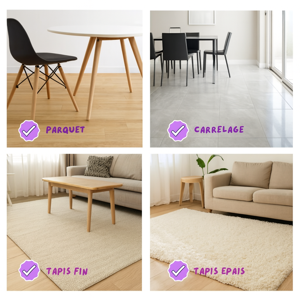 (Pour de meilleures performances, privilégiez les surfaces lisses)